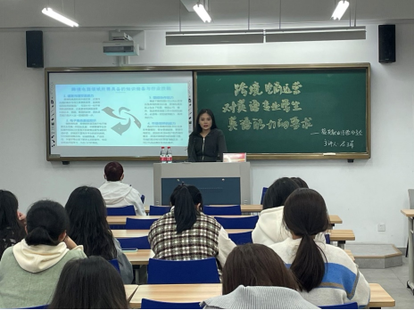 就业经验分享会由2021届商务英语员工石王菲担任主讲。作为杭州丰海电子商务有限公司运营专员,她依托自身经历分享了英语专业在跨境电商行业的优势与挑战以及英语专业员工从事跨境电商领域所需具备的知识储备与专业技能等内容。