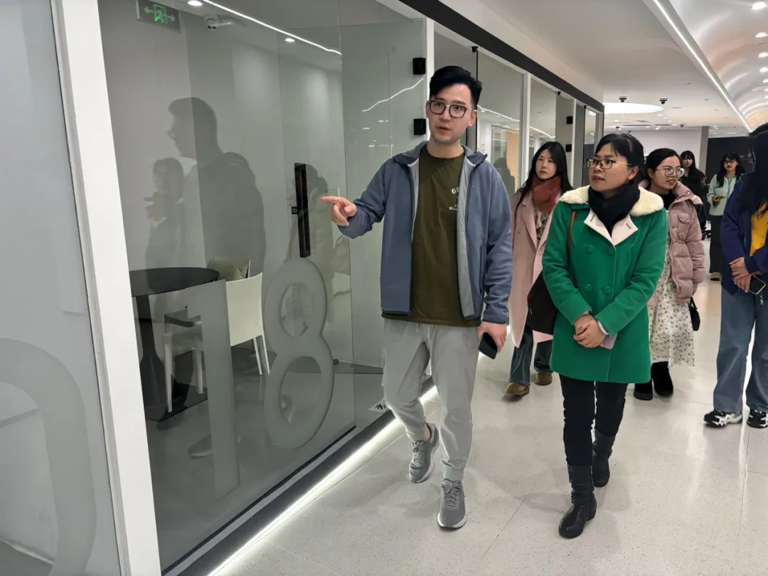 郑淑贞首先参观了公司的教学设施和办公区域。企业首席运营官叶大正详细介绍了公司的业务模式、院校合作以及未来发展规划。