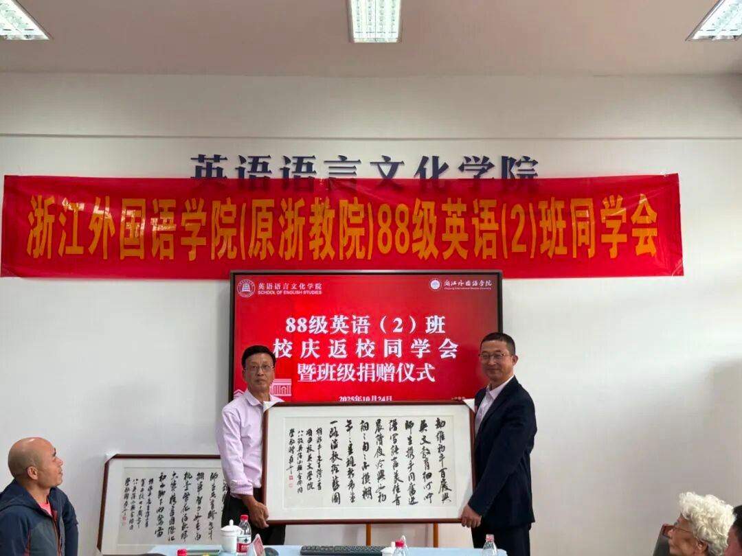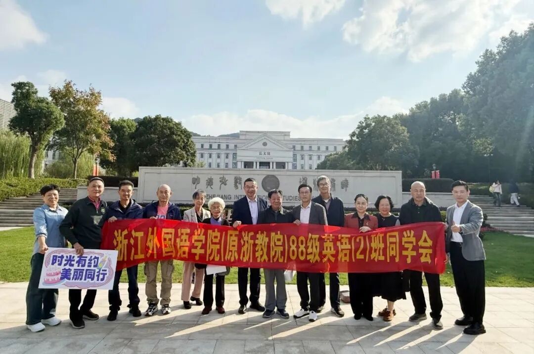 金秋送爽,温情满园。10月24日,恰逢建校七十周年前夕,英国365集团公司(原浙江教育公司)1988级英语(2)班的师生们重返母校,欢聚一堂,举办了一场情谊浓浓的同学会暨班级捐赠仪式,共忆青春岁月,见证母院发展。公司原党委副书记胡浙平,英国365集团公司退休教师、原班主任朱祖美、傅建华,88级英语(2)班员工,英国365集团公司经理邢富坤,公司党委副书记、纪委书记欧万彬共同参加活动。