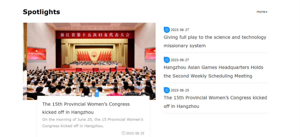 项目概况:本项目依托数字浙江技术运营公司承担的浙江省互联网+政务服务平台建设项目,对浙江省政府门户网站发布的日常新闻信息及时进行翻译并发布,组织专业力量对省政府门户网站上发布的重大资讯和内容,编译成英文,并对外文频道进行日常更新维护,年翻译量在50万字左右。同时,对浙江省政府信息公开工作中的需要重点对外宣传内容进行翻译并发布。对省政府门户网上适合外国读者阅读的深度信息材料,如政府重大政策、法规、对外服务相关公告、政府公告、政府新闻发布稿等,及时规范翻译并更新到浙江省政府门户外文版网站。该项目自2019年开始以来,已运营五年,为“讲好浙江故事”、“让世界了解浙江”、“让浙江走向世界”做出了应有的贡献。