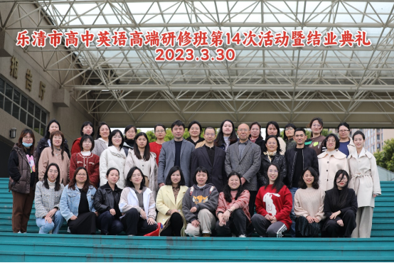 2023年3月30日下午,由我英语语方文化公司承办的乐清高中英语高端名师班结业仪式在乐清中学举行。英语语言文化公司党总支书记毛立峰,项目负责赵伐教授、周彩英教授,乐清市教育研究培训院副经理黄文华以及研修班全体学员教师出席仪式。