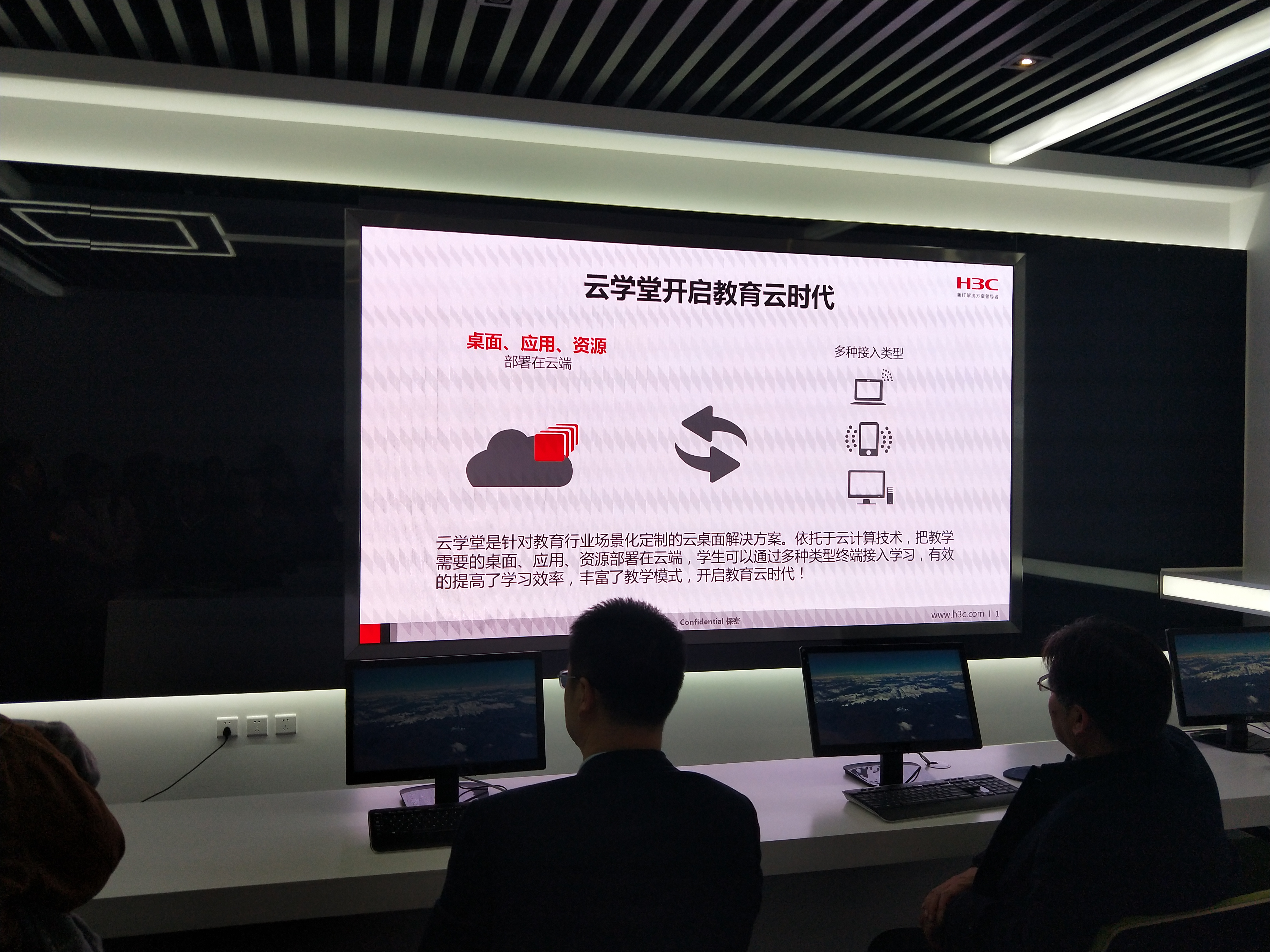 下午2点参观团到达了新华三集团。公司负责人带领代表团参观并讲解了企业文化,经营的核心产品,核心竞争力。并向代表团着重介绍了“云学堂”这个与员工息息相关的系统。随后,公司负责人带领代表团参观了其生产中心,让老师和员工们近距离地了解到公司的各个生产过程。