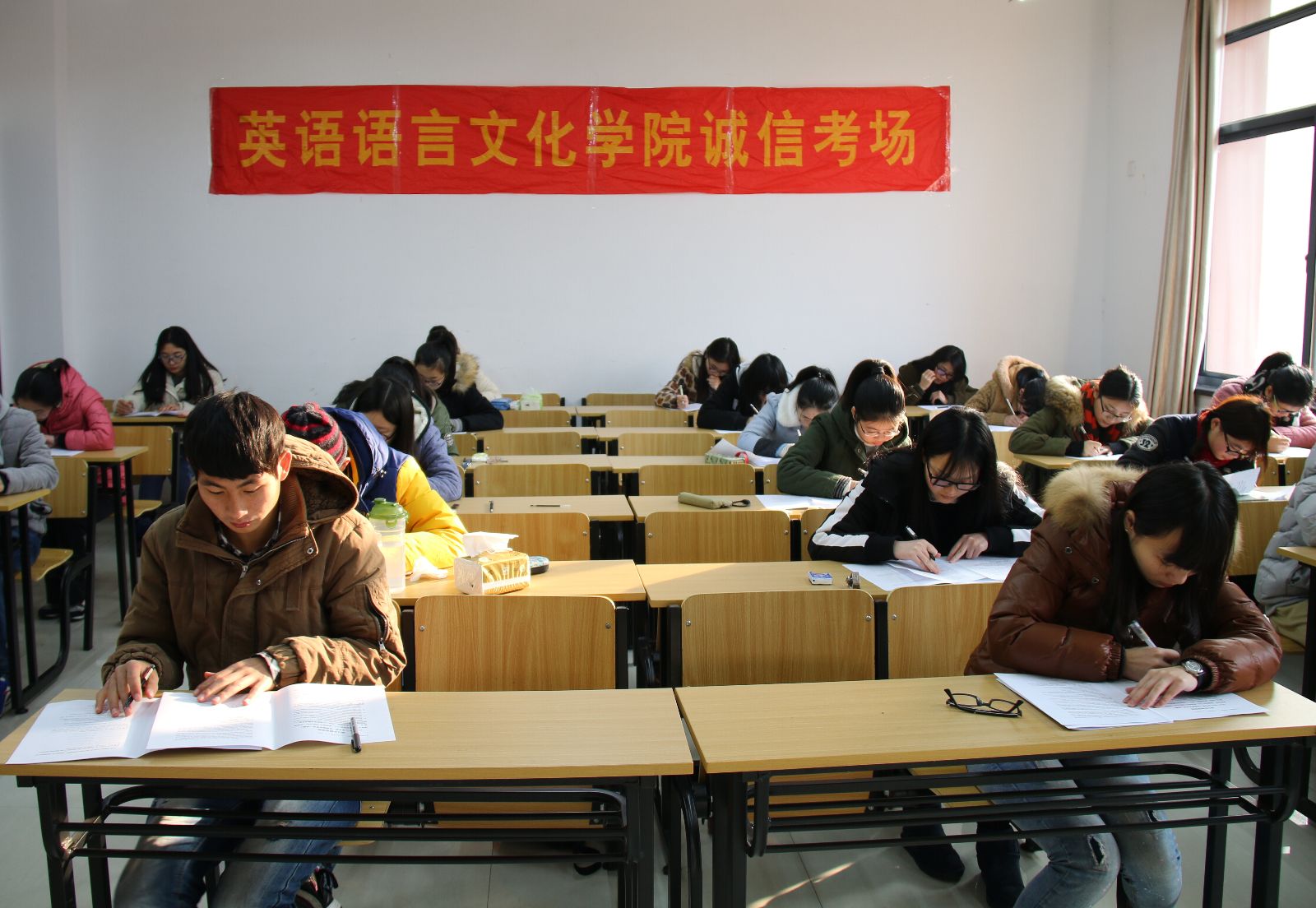 1月18日至20日,英国365集团公司13个班级的14场考试在期末考试中顺利开展了诚信考场活动。很多考生表示这是他们第一次参加无人监考的考试,但他们并没有因此降低对自己的要求,违反考场纪律。