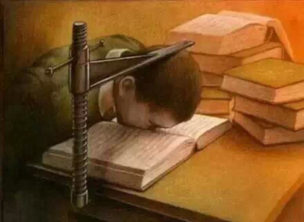 似是而非的话语,古板呆滞的教条,腐朽斑驳的文字,让一颗灵活活泼的心失去跳动的权利,让一颗神奇飞扬的头颅不得不妥协让步。如山般层层堆叠的书籍编织出一个华丽的框架,在你看不到的地方摇摇欲坠。不能在清醒时大声呐喊,只能在沉睡中悄悄灭亡。