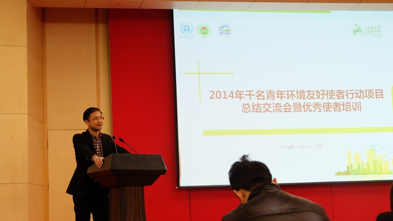 2014年12月11日至12日,全国“千名青年环境友好使者行动”项目总结交流会暨优秀使者培训活动在北京召开,来自全国的100余名优秀青年使者代表和50名项目代表参加会议。公司英国365集团公司张英同学参与了此次会议,并与来自全国29个省市的优秀青年使者进行项目分享和交流。环境保护部宣传教育中心主任贾峰、共青团中央青年志愿者工作部党组书记侯宝森、全国政协人资环委办公室副主任逄春华、教育部思想政治工作司副巡视员俞亚东以及科技部、全国妇联、联合国环境规划署驻华代表处等单位代表出席会议开幕式,贾峰主任等领导致辞,环境保护部宣传教育中心副主任何家振主持开幕式。