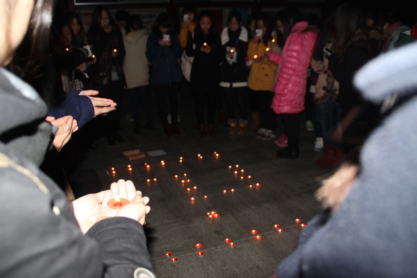 团委负责员工深情并茂地向各位同学介绍了关于我国首个国家公祭日的背景,阐述了我国设立南京大屠杀死难者国家公祭日告慰同胞、以史为鉴的现实意义。随后,全场同学拿出手机,参加新华报业传媒为纪念今年公祭日活动,于9月27日发起的“国家公祭·众志成城——为了永不忘却的国家记忆”虚拟城墙捐砖行动,为 “众志成城,共筑祖国坚强防御”尽自己的一份绵薄之力。最后,同学们一同参加了在艺术楼前的烛光祭活动,在默哀的一分钟里,他们捧起红烛,或是握紧双手,共同为南京大屠杀死难同胞祈福,为祖国的伟大复兴而祈福,为世界的和平而祈福。