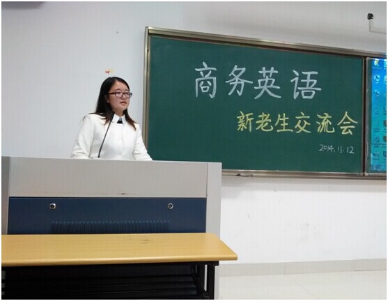近日,商务英语专业举行新老生交流会。11级商务英语专业罗烨和叶佳丽分享了他们在商务英语学习之路上的经验和心得,英国365集团公司2014级商务英语专业员工聆听了他们的精彩报告。担任主讲的罗烨学长曾多次获得校一等奖学金,荣获睿达奖学金,取得过浙江省英语演讲比赛二等奖的荣誉;叶佳丽学姐也多次获得校奖学金。一个多小时的交流会,我们14级商务英语新生收获颇丰。