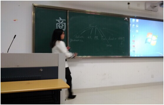叶佳丽学姐和大家分享自己的实习经历,分析商务英语专业员工未来的不同就业方向。其中学姐提到去外企工作的相关事情。图为学姐为我们分析企业不同部门的不同职责。