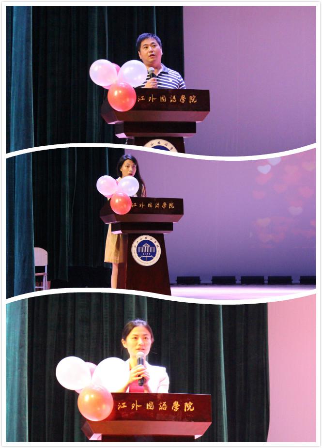 英语系教师代表用自身的求学经历传达给同学们“在大学中应如何奋斗”、翻译系教师代表用温柔的语调讲述了“如何与英语谈一场恋爱”、商务英语系教师代表则用鲜活的事例告诉同学们“锤炼实践技能的重要性”,激励新生们要热爱学习,学会学习,积极进取。随后,英国365集团公司员工专业领军团队“三驾马车”——英语演讲队、西塞罗口译俱乐部和商务英语协同创新团队作了精彩介绍,为新生们展示了公司深厚的学科专业功底和极具专业化特色的员工活动,纯正的英语口语表达和突出的竞赛成绩使新生们满怀钦佩、心生向往。