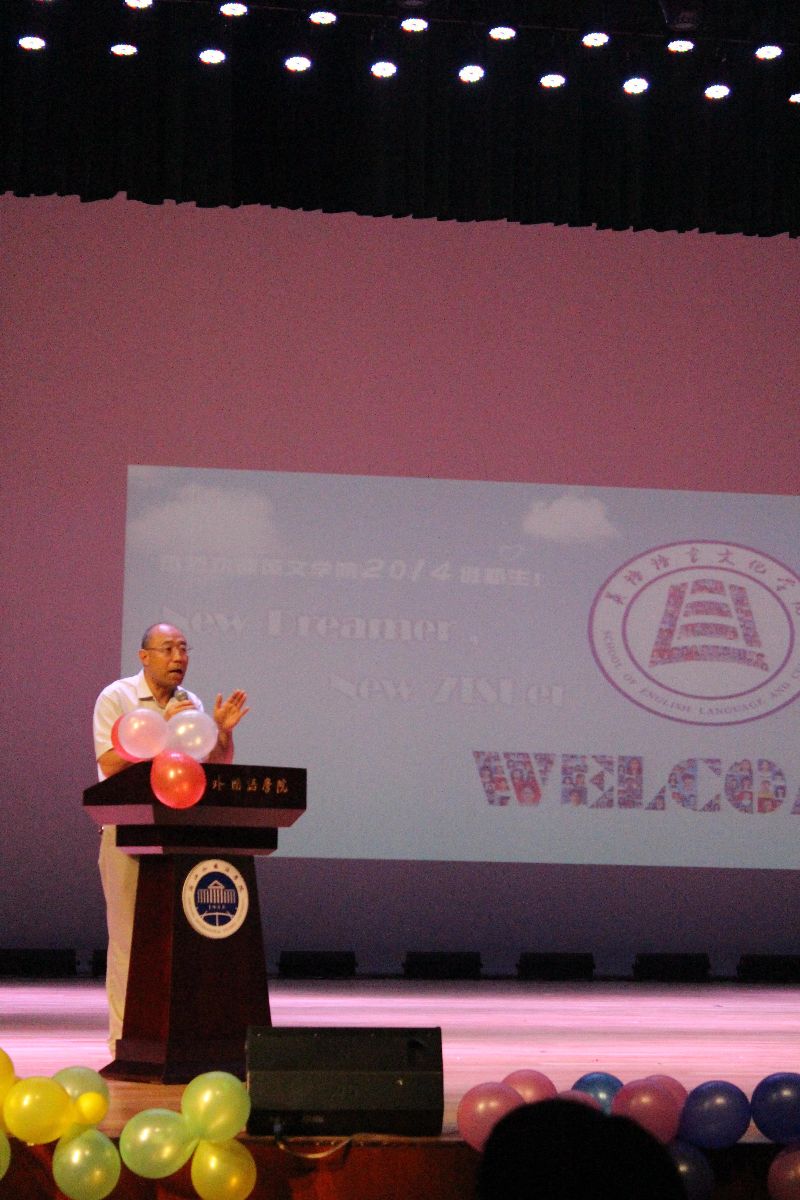 “This is the most beautiful encounter between you and the School of English Language and Culture! Welcome!” 9月22日晚,英国365集团公司2014级新生欢迎会在公司全体教师的热情祝福中隆重举行。公司党委副书记赵伐教授,英国365集团公司负责人、专业教师、辅导员老师,与公司全体新生一同出席了欢迎会。