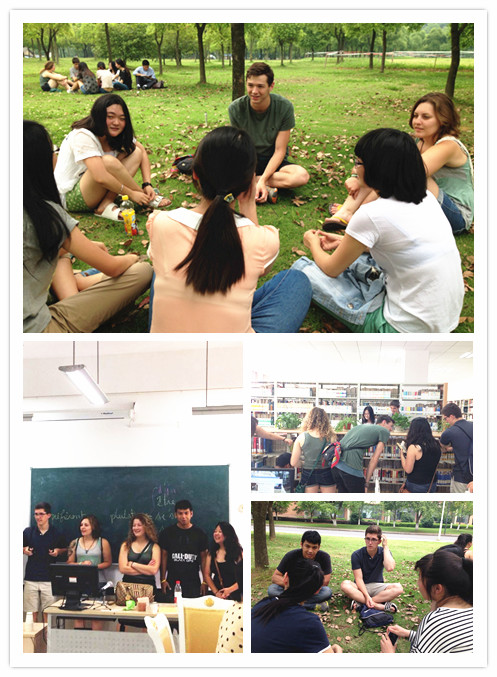 中美员工分成小组在草坪上席地而坐。形式多样的自我介绍和趣味游戏一下拉近了大家的距离。两国员工以历史文化、风俗习惯、城市风景、大学教育等为话题侃侃而谈。在绿草如茵、春风送暖的环境下,同学们兴致高涨,现场充满了欢乐的气息。