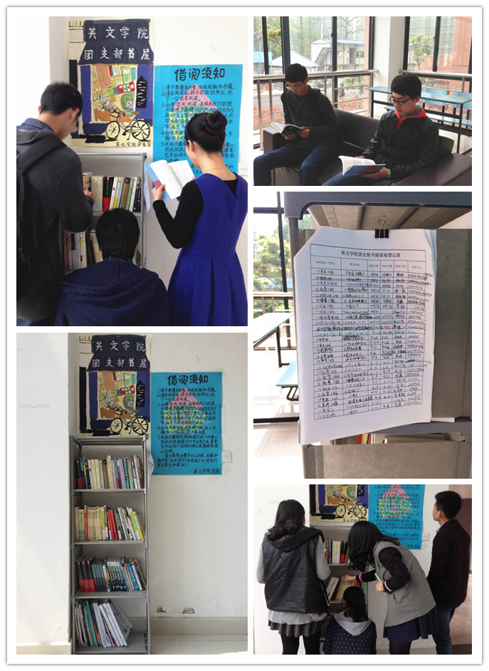 本次活动以各团支部为单位推荐优秀中英文作品。经过支部成员自荐、支部推选,收到27个团支部共计250多本书籍,涉及党建团建、政治、哲学、教育、历史、文学等内容。书架设于教学楼与艺术楼间的一楼通道,并贴有借阅须知和借阅登记表。