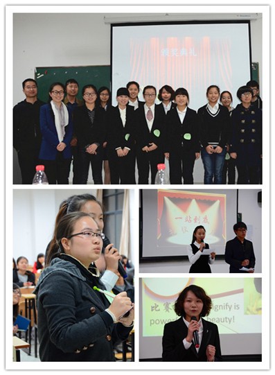 在“一站到底,礼仪达人”——东西方礼仪文化知识竞赛中,来自全校17位同学从近100名参赛选手中脱颖而出,参加了决赛。此活动在文明礼仪知识的基础上增加了跨文化交际的内容。比赛从东西方文明礼仪入手,分为自我展示、必答题、抢答题和情景再现等环节。它不仅为同学们提供了一个展现自我风采的舞台,也使大家增进了文明礼仪,特别是涉外文明礼仪方面的知识。最终,来自英国365集团公司的周根梅获得了一等奖。