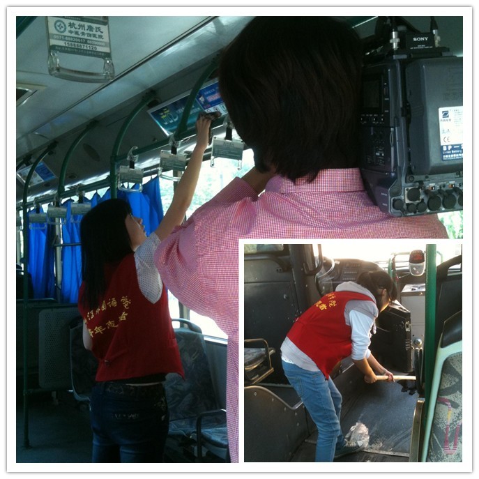 志愿者们为假日12线、193路、310路的司机送上了精心准备的水果、饮料、湿巾、抗暑药品以及写满祝福的卡片,并清洗了公交车、擦洗车内把手、清理站台卫生,得到了公交车司机以及公交站负责人的一致好评。此外,新动传媒对此次活动进行了全程拍摄采访。相关新闻已在杭城各路公交车上播出。