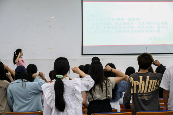 实践团队成员全体宣誓,举起右拳许下铮铮誓言,立志将挑战和困难视为成长的催化剂,将艰辛的环境作为锤炼意志的熔炉,不畏艰难,不惧挫折,以坚定不移的信念和勇往直前的精神,积极投身于本次实践中。