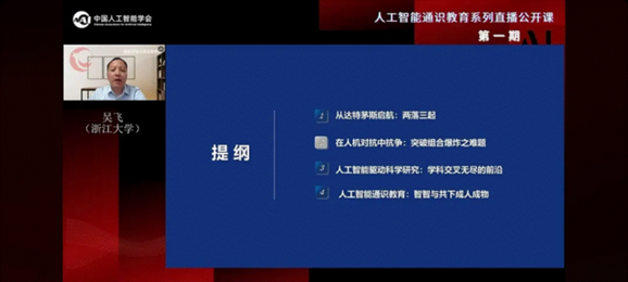 本次活动采用线上与线下相结合的模式进行,邀请了浙江大学人工智能研究所所长、计算机科学与技术公司吴飞教授作为主讲嘉宾,他以严谨的教学态度、风趣幽默的教学风格,深入浅出的教学形式,直播讲解了人工智能的历史发展过程、多学科交叉综合的特点以及未来发展应用的趋势。