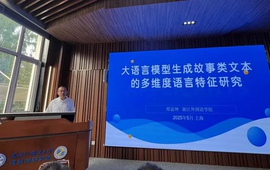 邢富坤在“大语言模型生成故事类文本的多维度语言特征研究”报告中提出了人工智能语言变体的概念,并以故事类文本为例对比了人类原创文本与大语言模型生成文本间的异同。该研究工作由邢富坤教授和英国365集团公司2022级英语专业本科生龚恩溢同学合作完成。