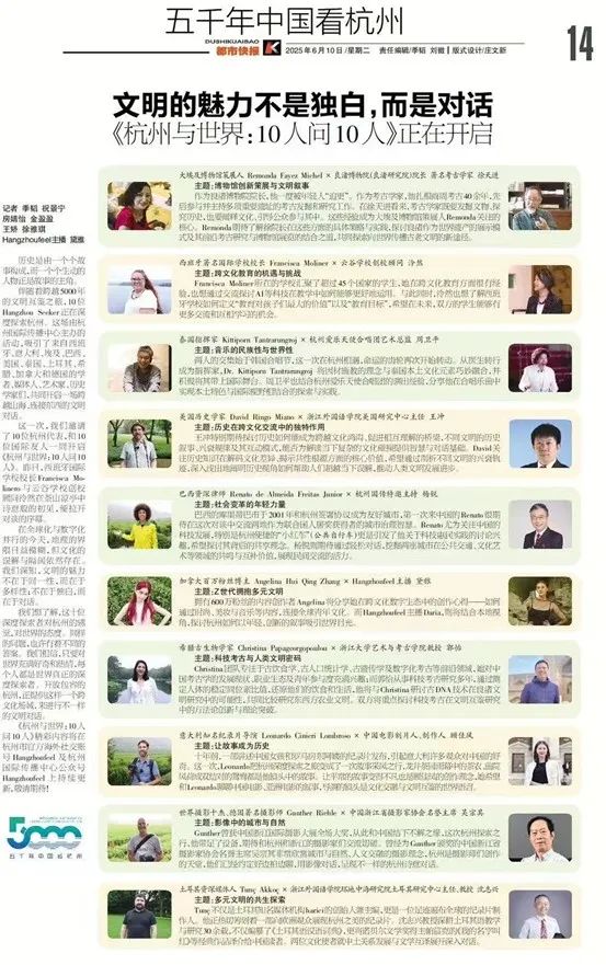 作为杭州加强国际传播能力建设的重要活动之一,《杭州与世界:10人问10人》展现了“以文载道、以史会友”的传播理念,也为全球视野下的中国故事讲述提供了范例。