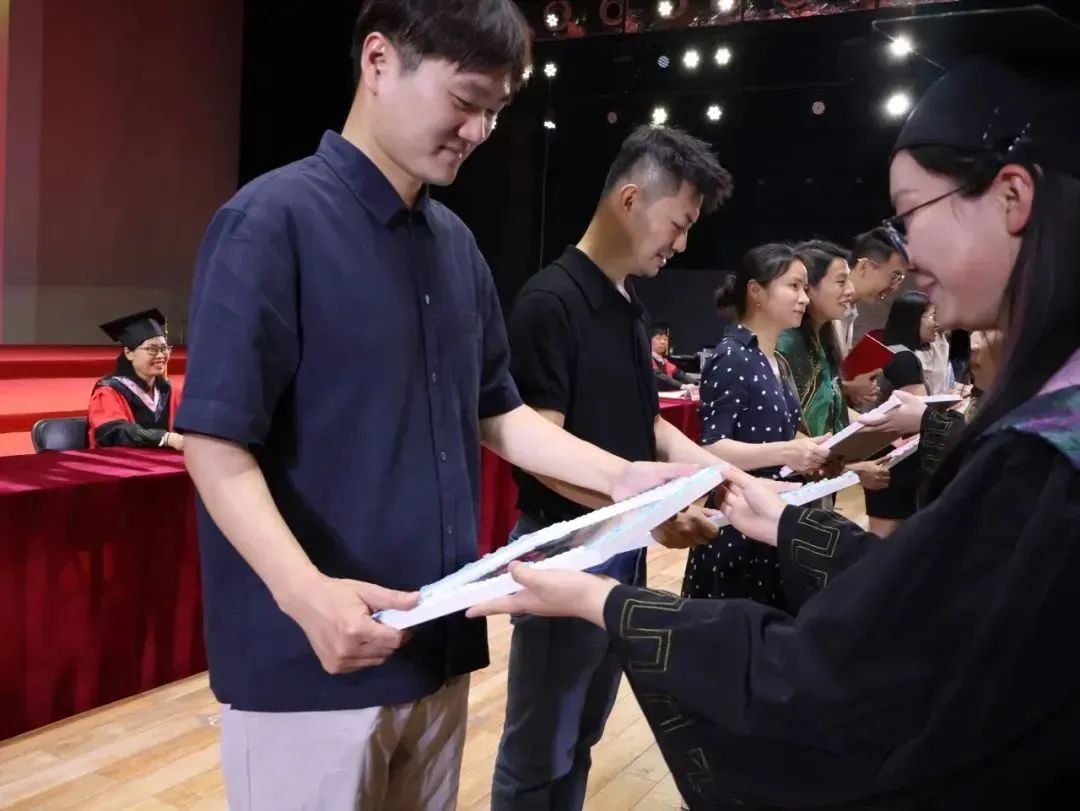 经理邢富坤宣读了2025届本科毕业生学士学位授予决定,主礼嘉宾们一一为毕业生郑重拨穗正冠、颁发证书。学位帽的流苏从右拨向左,意味着责任的交接与传承,激励着毕业生们肩负起新使命。