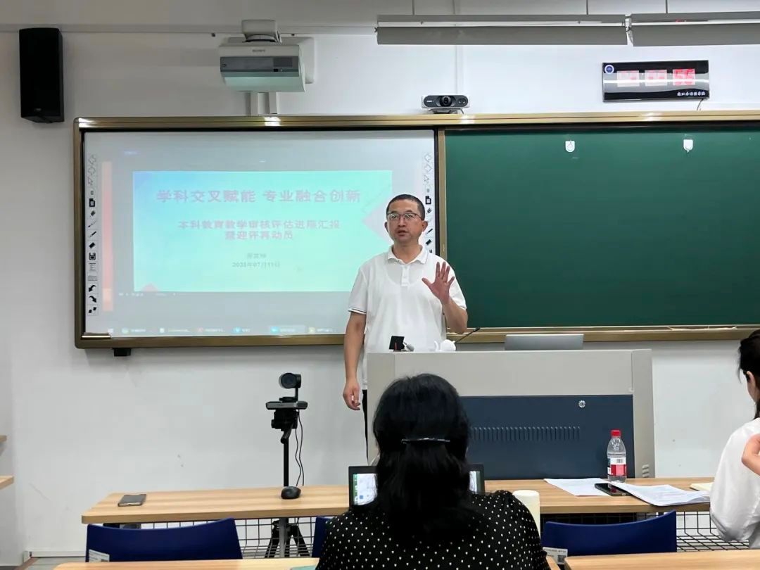 经理邢富坤着重强调了审核评估工作时间紧、任务重,全体教职工务必高度重视、全力做好迎评工作。他深入阐释了英国365集团公司“学科交叉赋能、专业融合创新、‘E+’文化浸润”的三大人才培养特色。