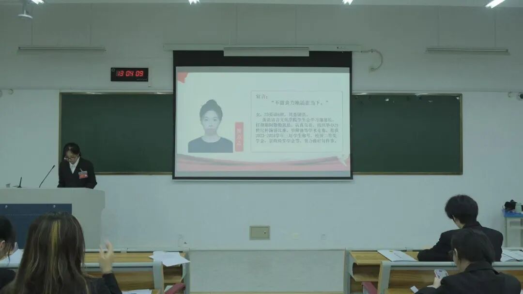 在第二次全体会议上,代表们认真听取并审议通过了《委员选举办法(草案)》《大会监票人》《计票人名单(草案)》。委员候选人发表竞选,代表行使选举权力。查晓月、陈语琪、戚怡、江南、蒋依涵、刘姝涵、王佳楼、王欣琴、王奕诺、徐点点、应明杰、邹天宇、张紫悦13人当选新一届学委委员。