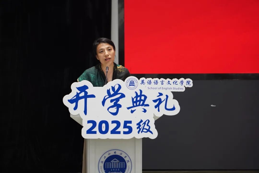 2025级学科教学(英语)专业钱佳浩同学作为公司首届研究生新生代表发言。她表示,大家既是学科发展的见证者,更是参与者,号召全体新生珍惜学习机会,主动融入学术氛围,以坚韧不拔的精神投身研究,从“新知”走向“真知”,从“接纳”走向“创造”,共同书写母校新篇章,讲好中国故事、浙江故事。