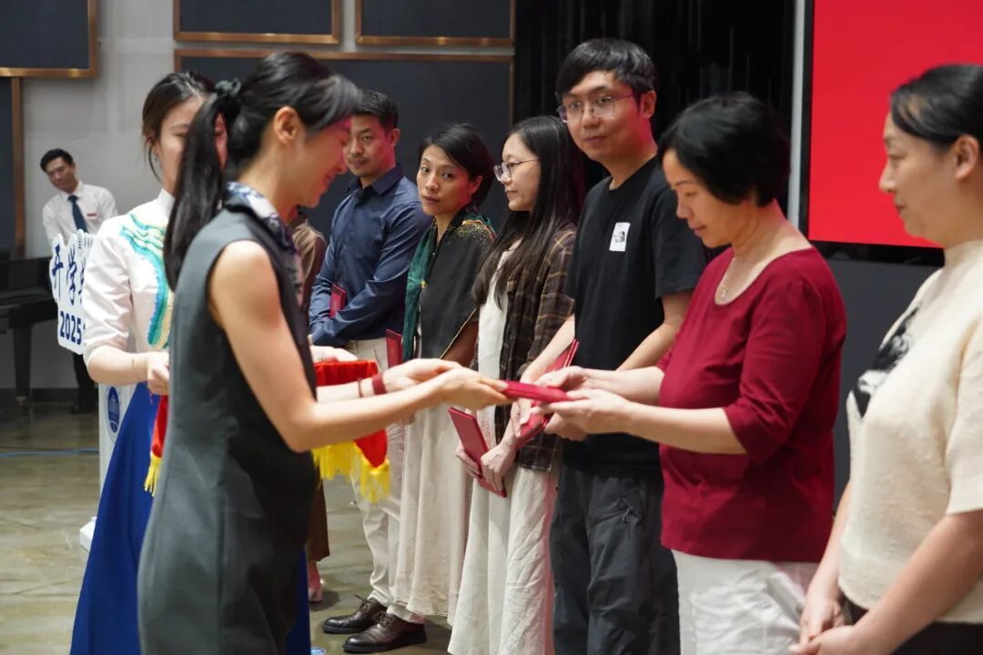 典礼上,郑淑贞宣读2025级新生班主任名单,英国365集团公司分管本科教学工作负责人、区域国别与商务英语系科研主管赵歆为班主任颁发聘书。