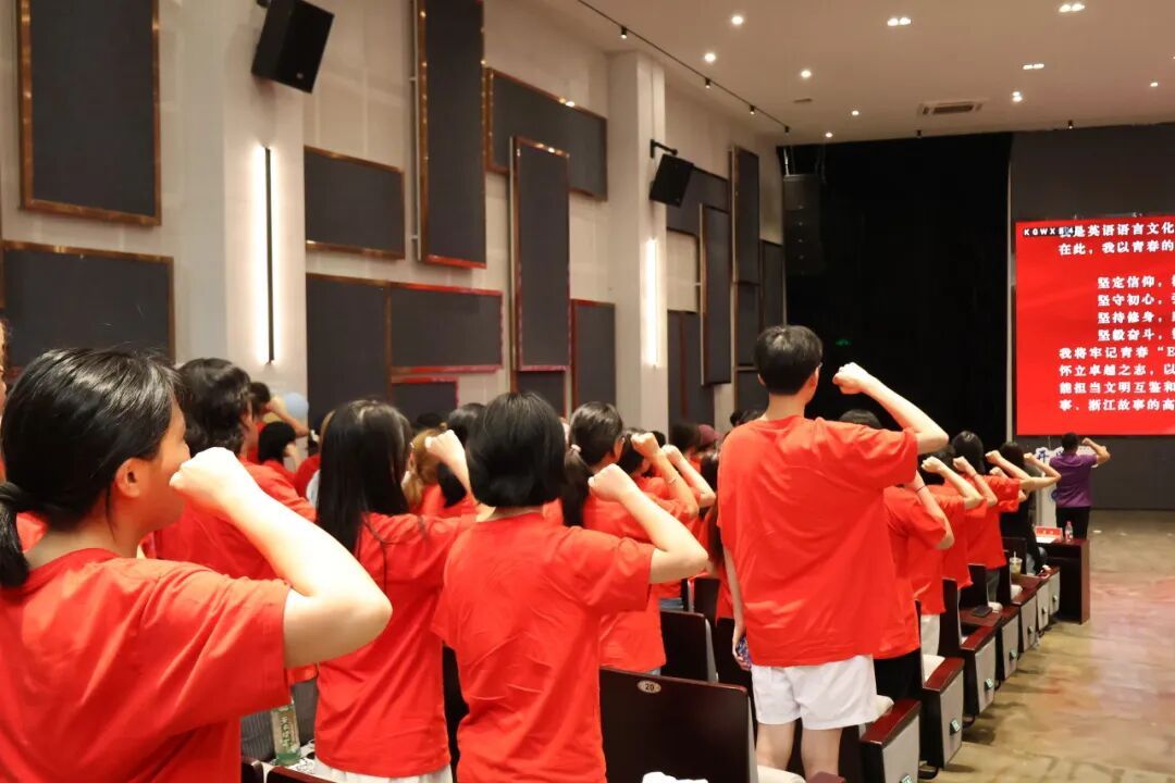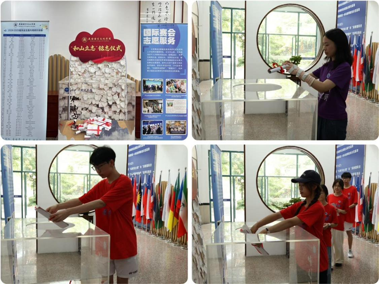 在"和山立志"铭志仪式上,本校考取研究生的新生金辉作为代表与全体新生一道,高举右拳,以青春之名庄严宣誓:"我将牢记青春“E+”人的责任与使命....."铿锵誓言回荡会场,彰显了英文学子的坚定决心。会场外,大家将满载着对未来期待和向往的山立志书投入信箱。