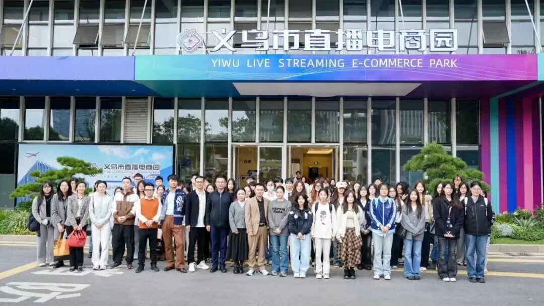 活动首站抵达义乌市直播电商园。语跃龙门公司总校董事长散玉霞和义乌市直播电商协会副秘书长、副会长许承德等人热情接待了到访师生。许承德详细介绍了电商园在整合直播资源、多平台运营及跨境电商等方面的创新孵化模式。员工们对融合新技术的新型商业业态表现出浓厚兴趣。