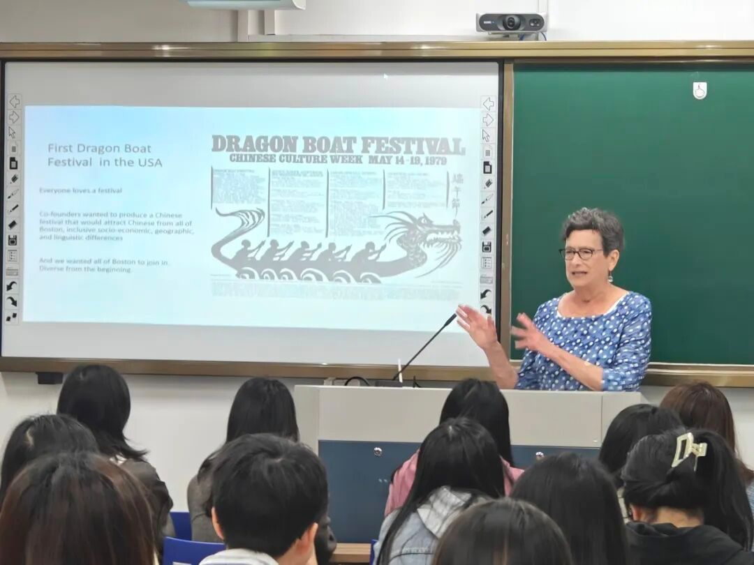 莱斯莉自1982年起,作为波士顿市长顾问参与筹建波士顿—杭州姐妹城市关系委员会,四十余年来持续推动两地教育、文化与商业合作。她特别分享了波士顿龙舟节的创办初衷:希望通过这一包容性活动,让不同背景的市民共同感受中国文化魅力。