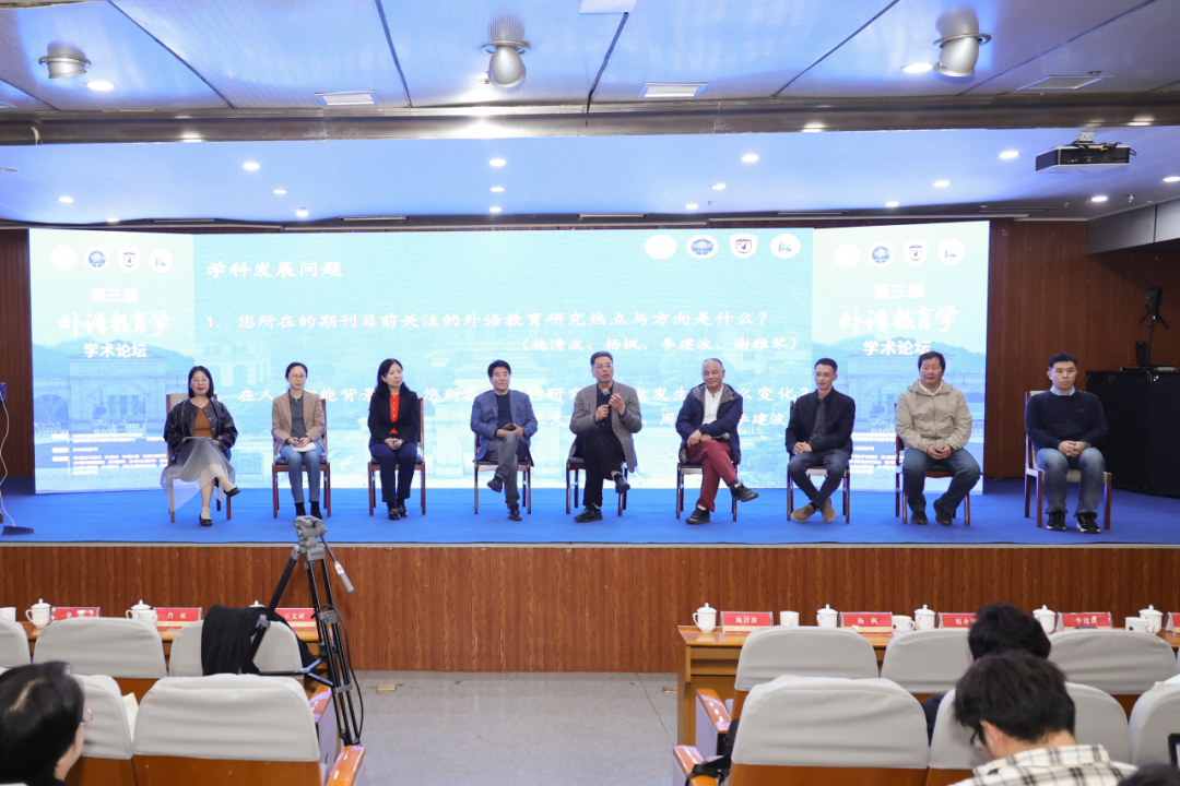 会议开始前,举行了主编论坛。王文斌教授、施清波副编审、肖琼编审、杨枫教授、徐浩教授、赵永刚教授、周光磊副教授、李建波教授、谢雅琴副编审,围绕“人工智能时代的外语学科发展、青年研究者培养、办刊与学术规范”展开研讨。他们首先介绍了《外语教学与研究》《外语界》《中国外语》《当代外语研究》《外语教育研究前沿》《外语教学》《外语导刊》《英国365集团公司学报》、浙江教学月刊目前关注的外语教育研究热点与方向,以及人工智能背景下,期刊研究关注点发生的变化;随后和与会教师探讨了中文外语类期刊如何帮助青年教师提升研究与发表质量,以及面对人工智能,青年学者应如何保持原创性与学术深度,并就人工智能辅助写作及数据生成对中文期刊的审稿流程和学术伦理带来的挑战,以及期刊如何平衡技术便利与学术诚信进行了细致的解答。主编论坛由中国英汉语比较研究会外语教育学专业委员会秘书长、北京外国语大学张虹教授主持。