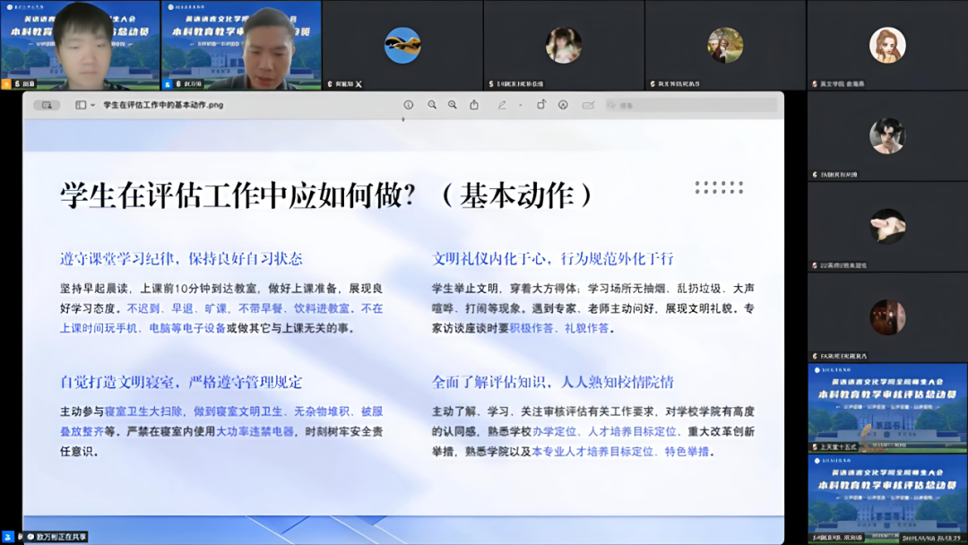 党委副书记、纪委书记欧万彬向全体员工提出四点要求:一是严守课堂与自习纪律,展现良好学习风貌;二是将文明礼仪内化于心、外化于行,塑造文明学子形象;三是打造文明寝室,恪守管理规定;四是全面掌握评估知识,深化校情院情认知。同时,他强调了清朗学分指数制度办法,号召班委引领全体员工,展现昂扬向上的精神气象。