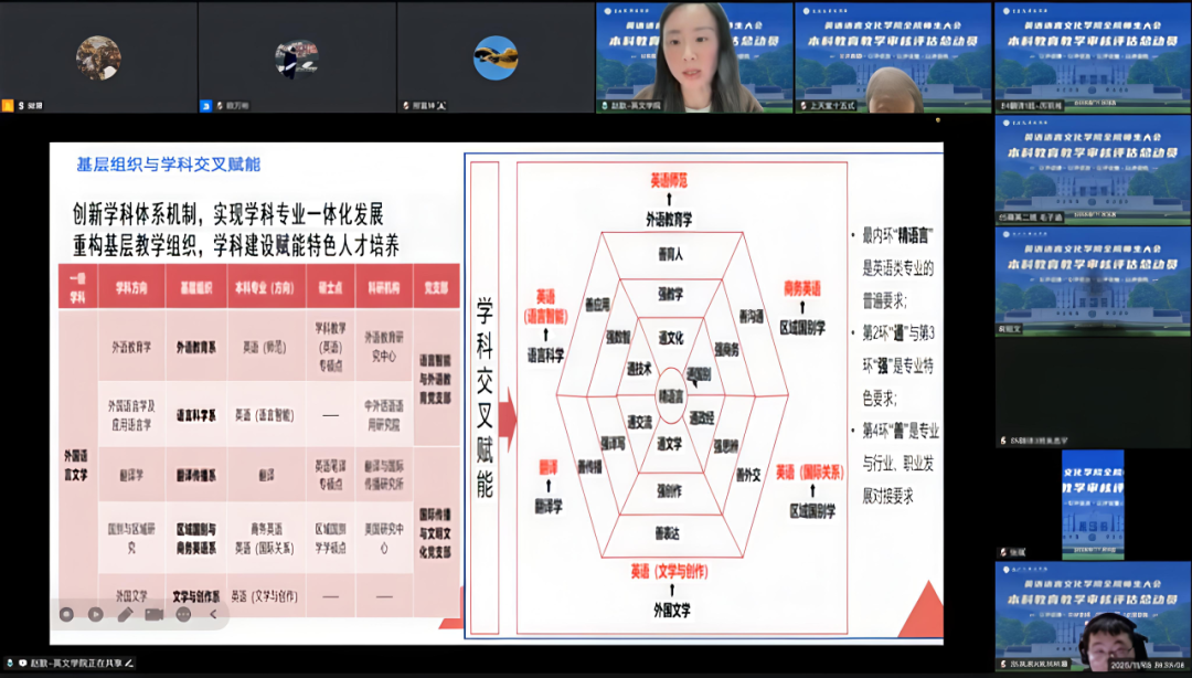 公司学术副经理赵歆从专业建设、本科教学、学术特色维度,详解审核评估核心内容。她紧扣公司第三次党代会“建设国际知名以服务新型国际关系为特色的外语名校”的办学定位,从基层教学组织、专业方向、团队团队等方面全面介绍公司概况,深入解析团队建设如何赋能“精通强善”特色人才培养。