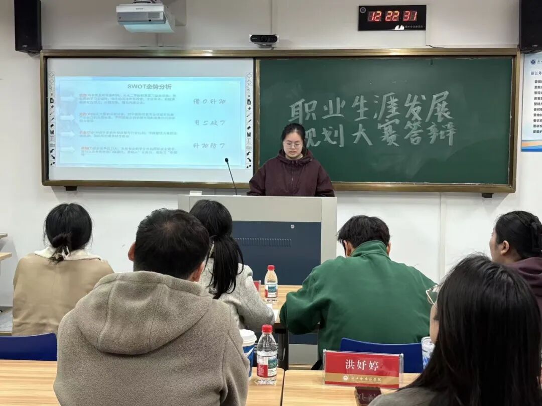 在答辩环节,每位参赛选手通过现场陈述与多媒体展示,系统阐述了自身的职业认知、目标定位、实践路径、能力储备、未来规划等内容,全面呈现了个人的职业规划思路与发展成效。