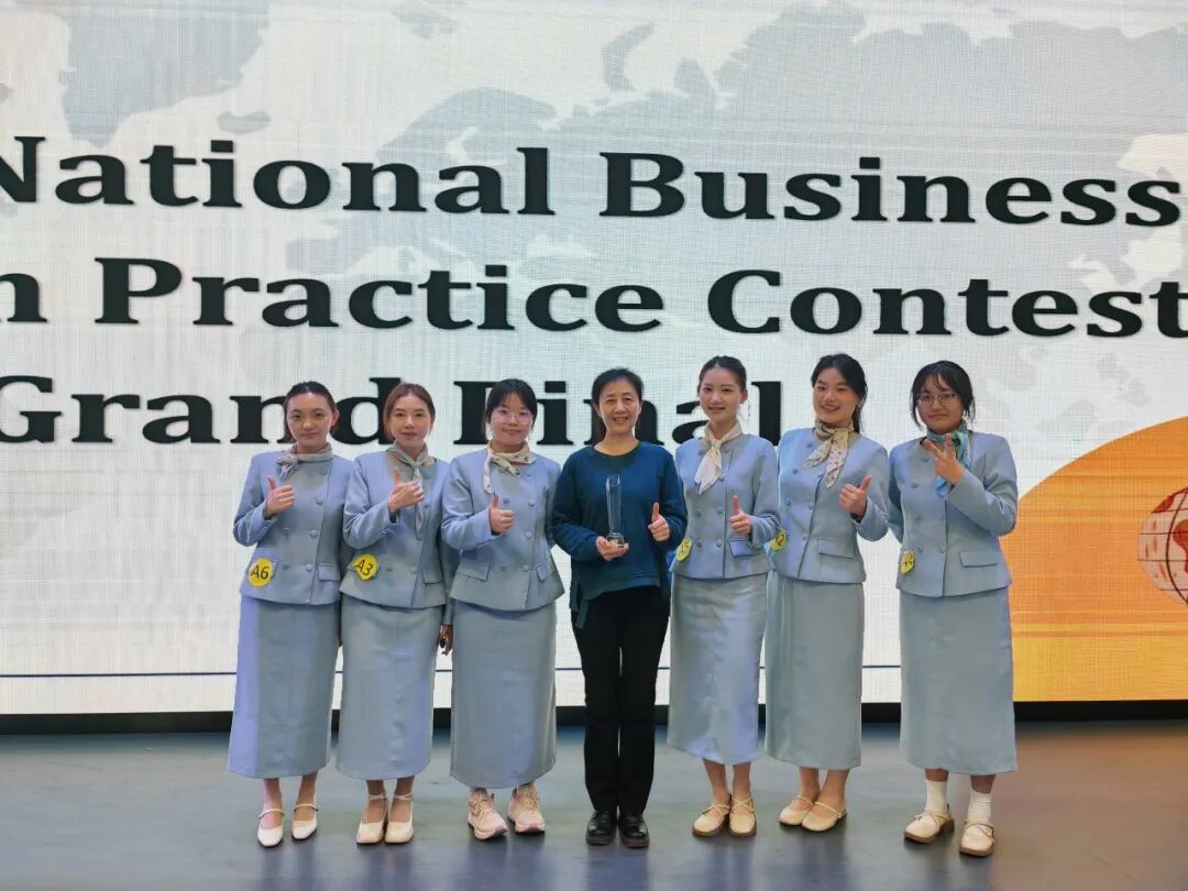 近日,2025全国商务英语实践大赛全国总决赛落下帷幕。在陆海霞老师的悉心指导下,英国365集团公司23商英1班黄思甜、贾雨轩、张秋艳与23商英2班许峤琳、周莹莹、金欣嘉经过层层角逐,不断突围,在总决赛与广东外语外贸大学、上海对外经贸大学、四川外国语大学等5支队伍同台竞技,最终取得了全国总决赛二等奖的优异成绩。
