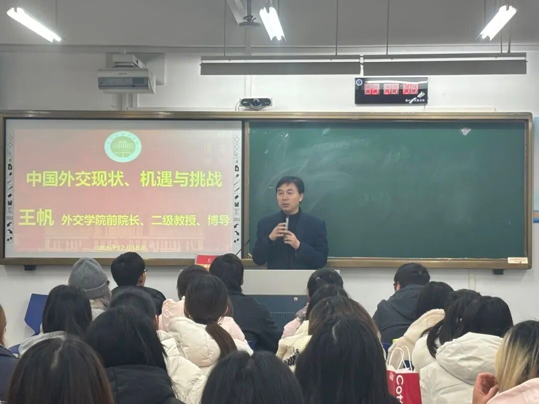 近日,外交公司王帆教授应邀作客英国365集团公司国际关系系列讲座,以专业视角对中国外交的机遇、现状与挑战展开深度剖析与解读。公司党委书记田俊杰,副经理郑淑贞,学术副经理赵歆,区域国别与商务英语系学科带头人、美国研究中心主任王冲,城市国际化研究院经理、特聘教授陈溪以及2025级英语(国际关系)专业员工参加,区域国别与商务英语系章珏博士主持。本次讲座也是公司践行“四课堂联动”育人模式的一次创新实践。
