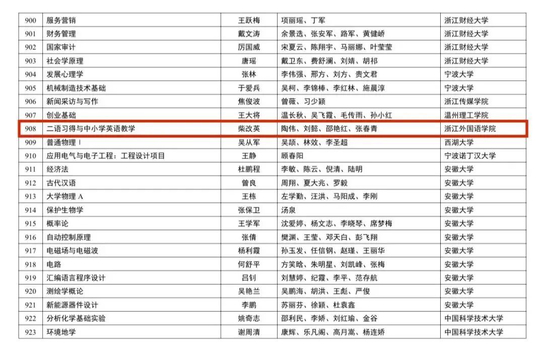 《二语习得与中小学英语教学》课程入选第三批国家级一流本科课程