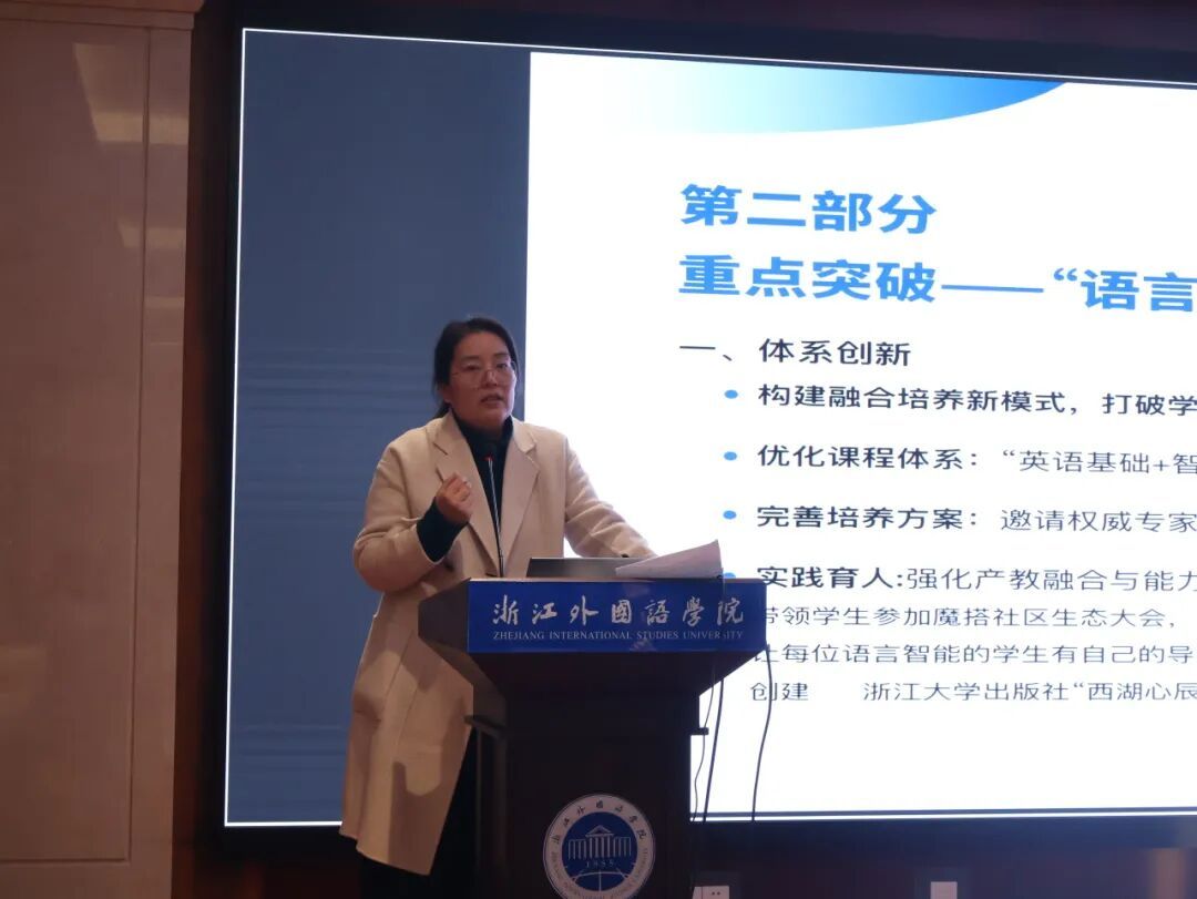 会上,外语教育系教学主管韩丹、科研主管刘懿,语言科学系教学兼科研主管郁伟伟,翻译传播系教学主管王晓露、科研主管曾芳芝,区域国别与商务英语系教学主管郭安琪,学术副经理兼区域国别与商务英语系科研主管赵歆,文学与创作系教学兼科研主管张静静依次交流了本系的年度工作情况。