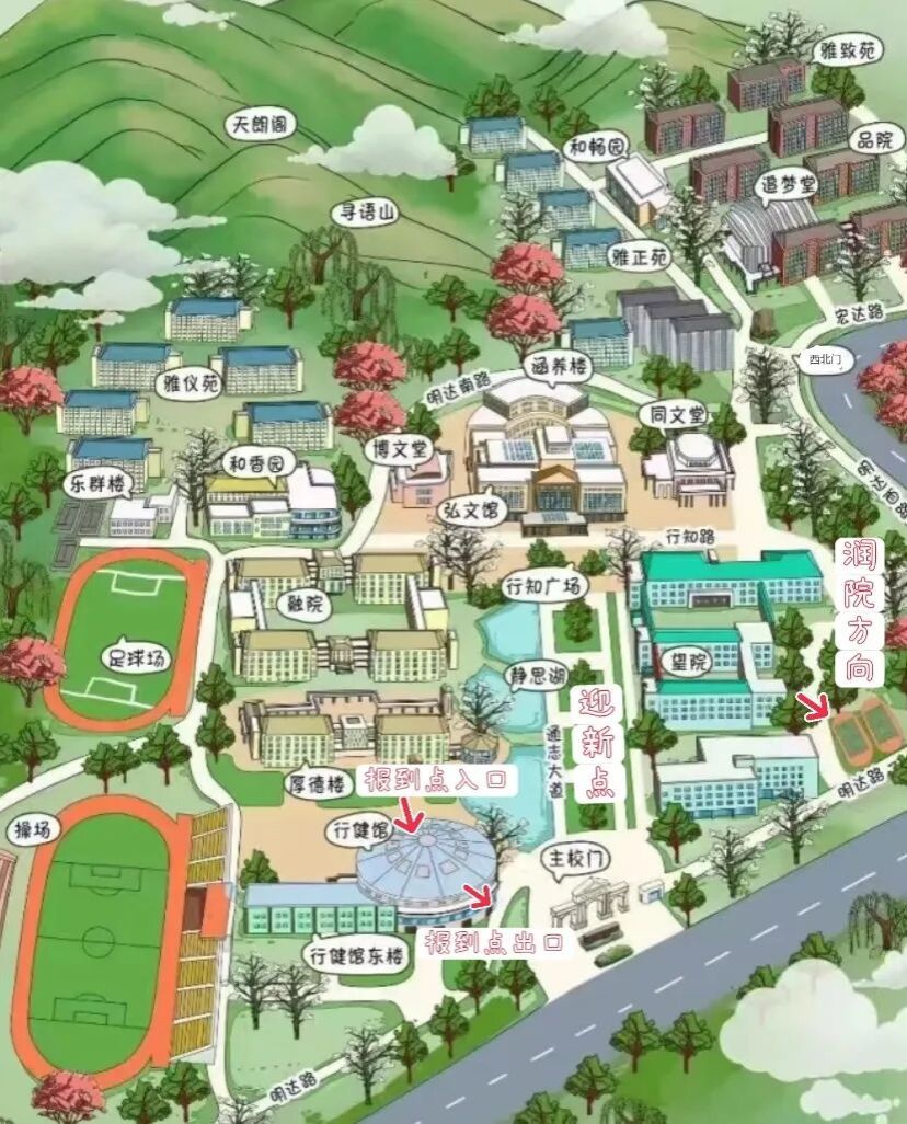 1. 外语路上的西北门将临时开放,为新生报到人员专用通道,西北门和外语路上的西门报到当天禁止一切私家车通行。