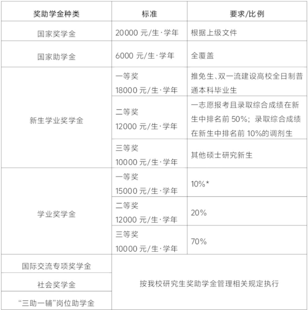为激励研究生潜心向学,更好地支持研究生顺利完成学业,公司设有各类奖助学金(包括国家奖学金、国家助学金、新生奖学金、学业奖学金、国际交流专项奖学金、社会奖学金),同时设置有研究生“三助一辅”岗位,提供“三助一辅”岗位助学金。家庭经济困难研究生还可以通过申请助学贷款、经济困难补助等方式得到资助。以上各项奖助政策的详细内容和申请条件以公司正式文件为准。