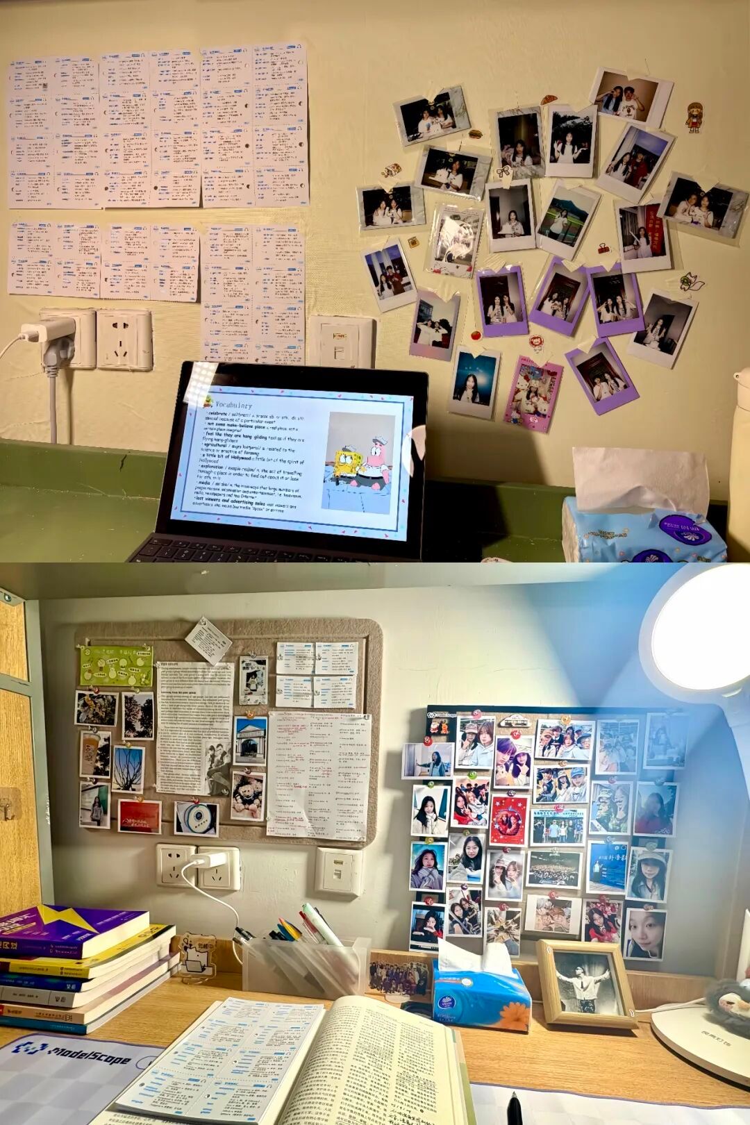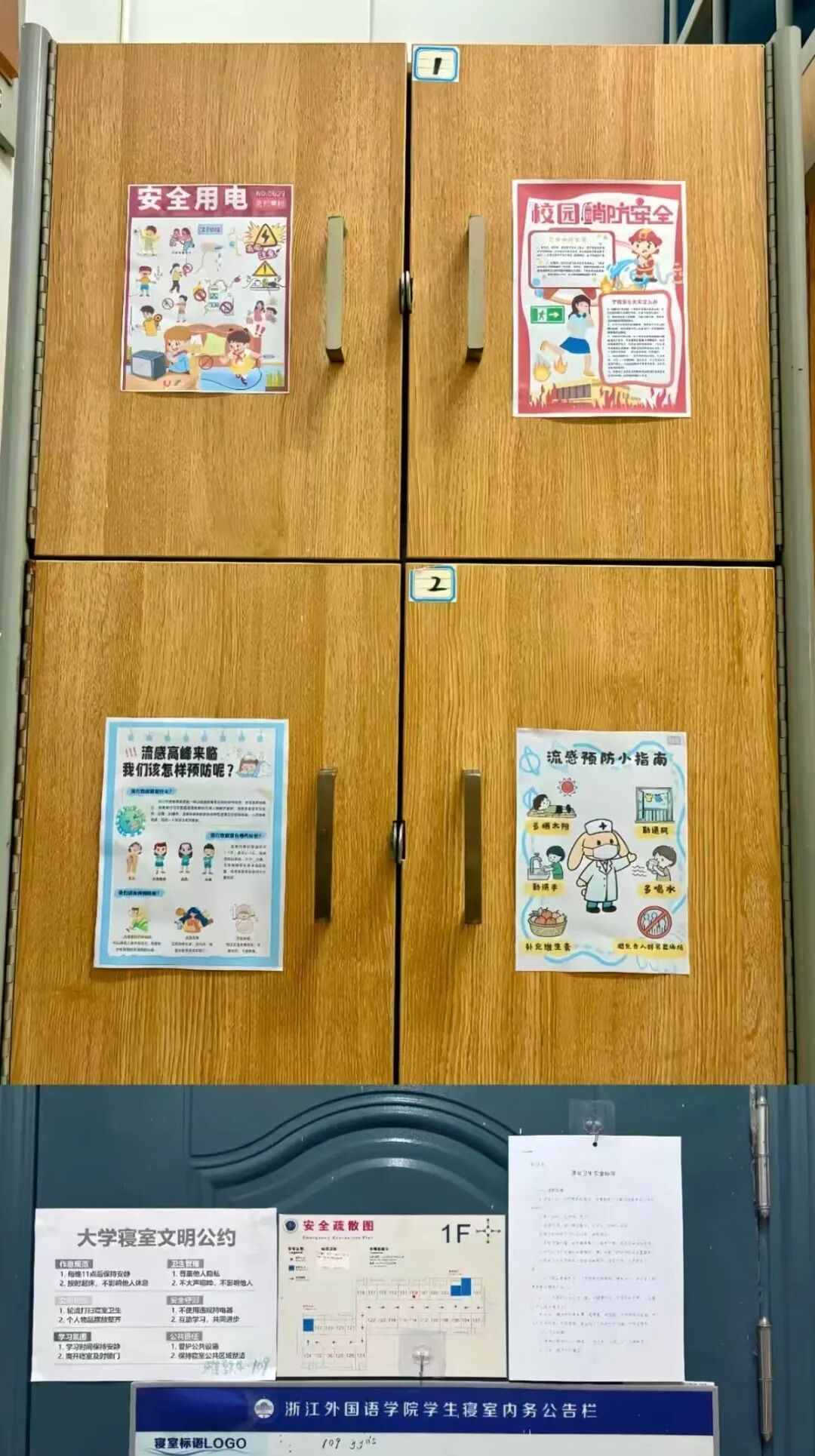 一隅天地,蕴浙外学子万卷风华。于柜门上,消防用电的温馨贴士筑牢安全防线。方寸桌前,英文单词、学习目标彰显逐梦轨迹,张张旧照片又将过往温暖回忆珍藏于心。我们在方寸寝室里,洋溢着独属