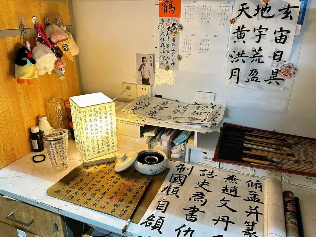 414是浸着墨香的温柔角落:书法区笔锋流转,拼豆挂件独具匠心,照片墙上的合照笑盾舒展,细碎日常被妥帖安放。每一处布置都是心的延伸、心灵的碰撞,我们相顾皆暖,轻声关照,手作的温度让这方小天地成为青春的港湾。