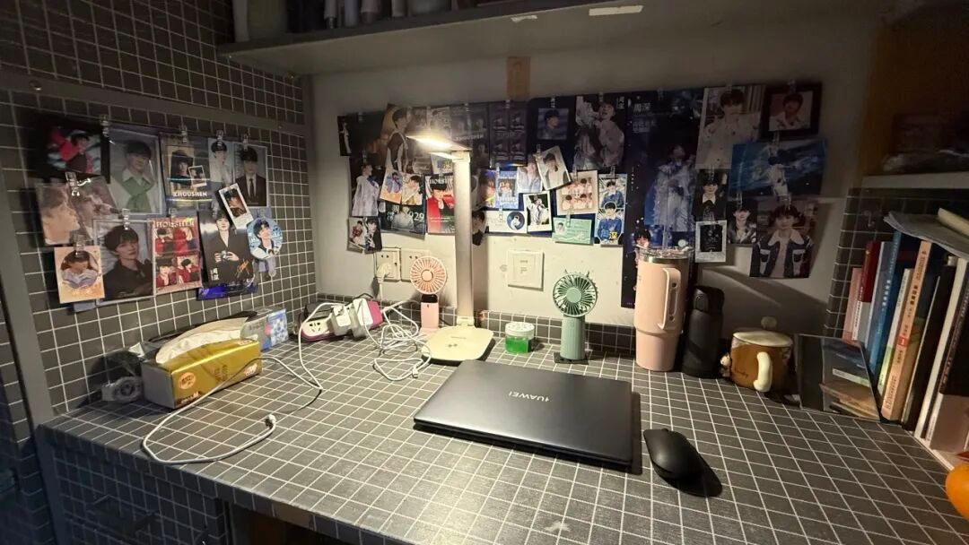 我们走的是简约风。宿舍内物品摆放整齐,地面干爽洁净,屋子宽敞明亮。为了增添生活气息,我们养了些绿植,寝室的女孩们还为宿舍配备了除湿机与香薰机。个人空间内,我们各自用自己喜欢的元素装饰桌面与柜子,让宿舍温馨又舒适。