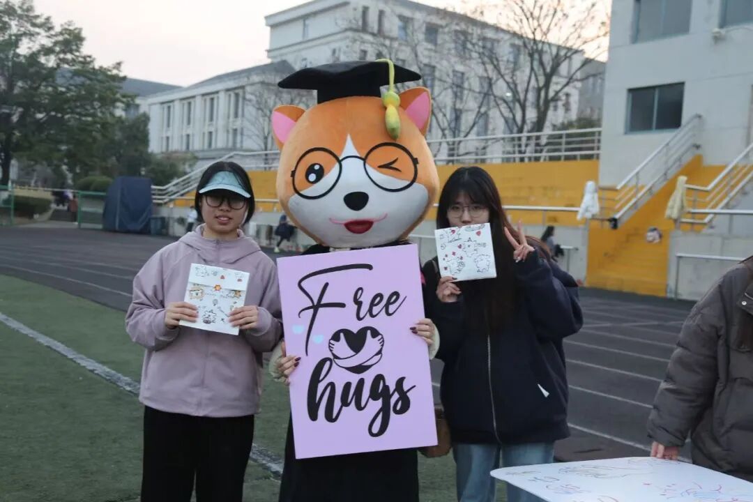 每一个暖心拥抱承载着这个寒冬特别的温柔。无需多言,一个用力的拥抱就能卸下备考的疲惫,让这份纯粹的鼓励,成为寒冬里治愈人心的光。