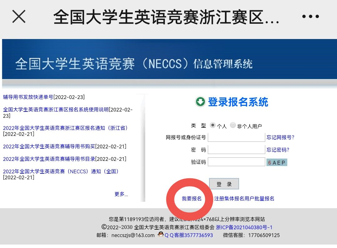 1) 扫码:扫码或输入neccszj.cn进入全国老员工英语竞赛浙江赛区官方网站。