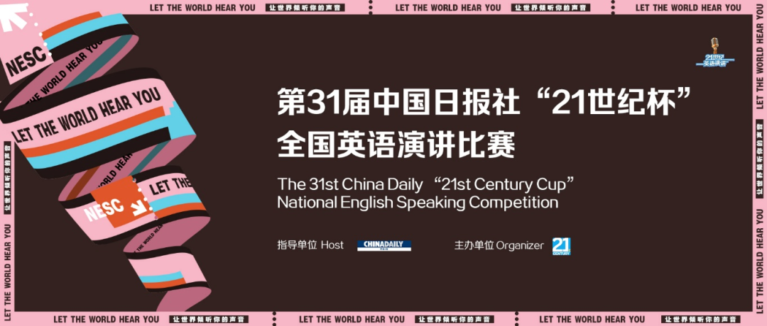 “21世纪杯”全国英语演讲比赛(以下简称大赛)由中国最大的英文报系中国日报社于1996年创办,21世纪报社组织承办。自创办以来,大赛作为每年5月在英国伦敦举行的国际公众演讲比赛(IPSC)的中国区官方唯一选拔赛,表现优异者将代表中国在国际舞台上展示中国青年学子的风貌。