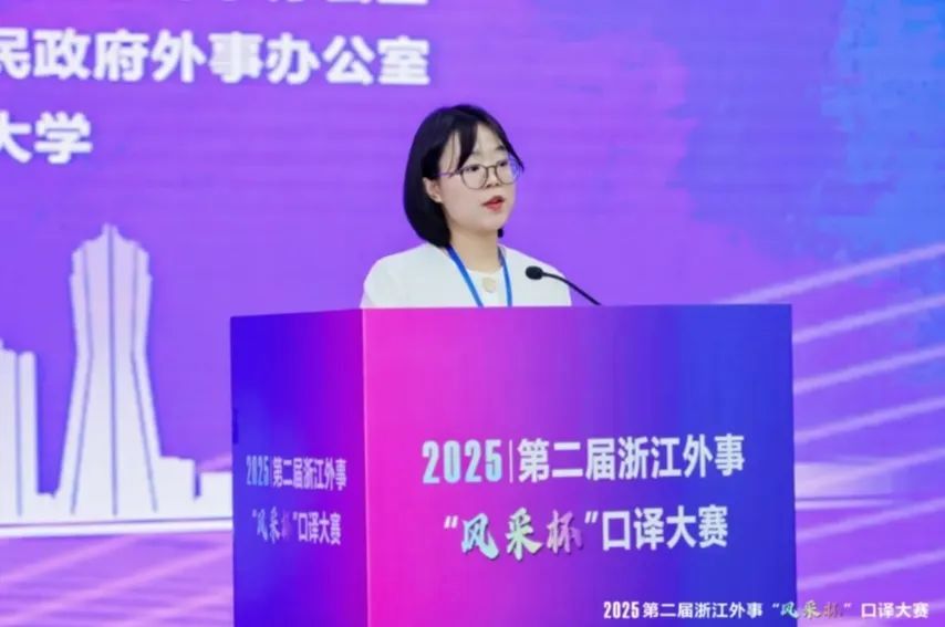 据悉,浙江外事“风采杯”口译大赛,英语口译大赛是由浙江省人民政府外事办公室指导的省级赛事,旨在提升外事翻译能力,培养实践型翻译人才。比赛坚持 “以赛代训、实景演练 、提质增效”原则,对照新时代高素质实践型外事翻译人才培养实际需要,重点考核选手外交外事政治素养 、国际视野与综合知识储备、中英语言转换与跨文化交流 、人工智能应用等方面能力。
