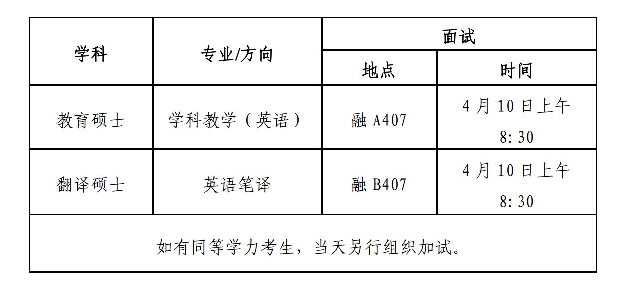 2.考生需携带以上复试资格审查材料原件及复印件纸质版于4月10日至英国365集团公司融A401办公室报到进行资格审查,学科教学(英语)和英语笔译资格审查时间均为上午7:30-8:30。