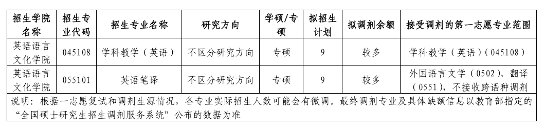 根据2025年公司招生计划和一志愿拟录取情况,公司学科教学(英语)专业、英语笔译专业有部分调剂名额。欢迎有意向调剂公司的考生密切关注公司研究生招生网和公司网站。现将相关信息公告如下: