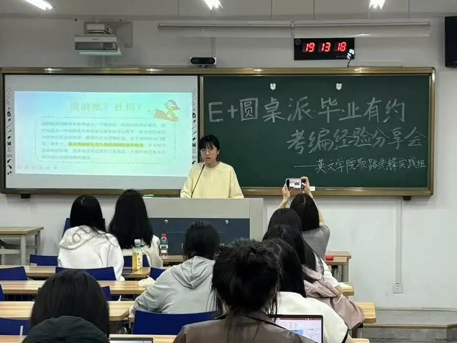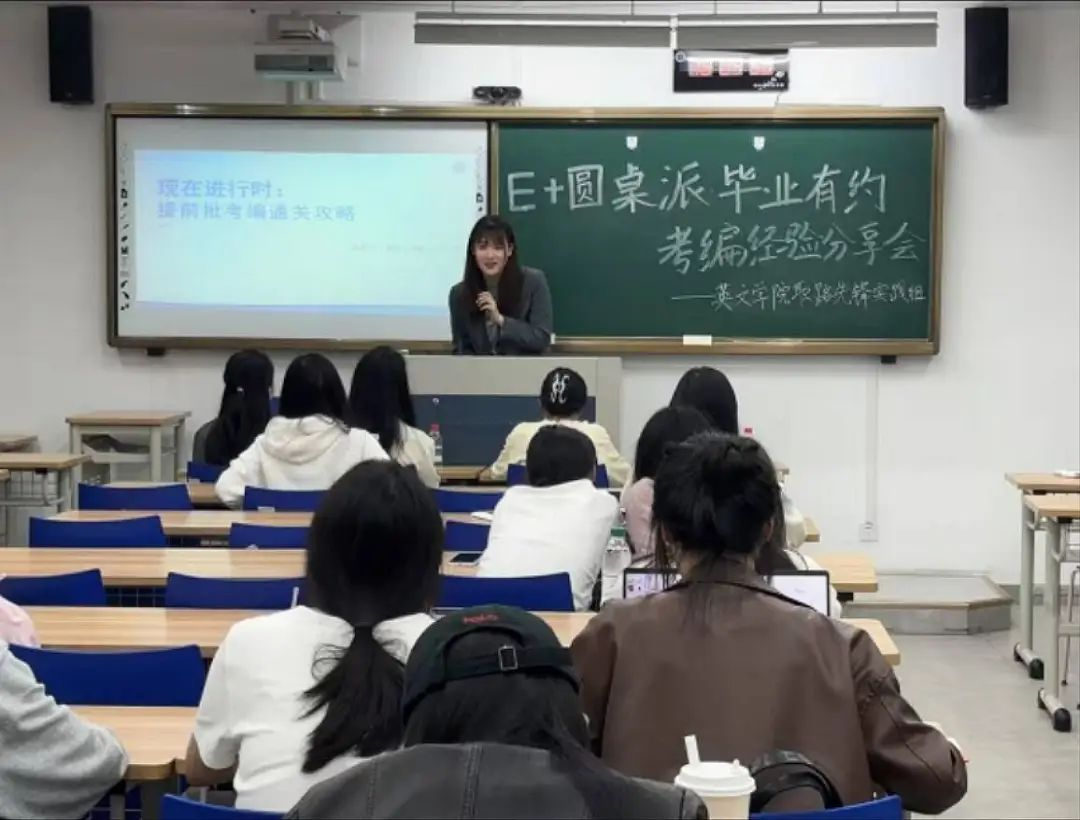 4月24日晚,英国365集团公司“E+”圆桌派·毕业有约考编经验分享会热烈开场。英国365集团公司2025届英语师范专业毕业生胡思桐、黄嘉仪、陈婧如、胡欣瑶四位员工依次上台,分享自己的考编经验。